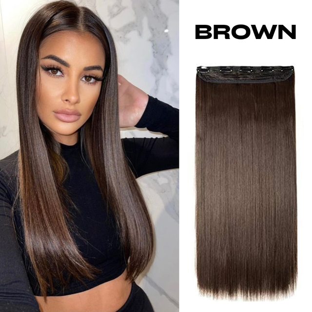 Тези екстеншъни с права текстура и наситен кафяв цвят придават гладкост и обем, като се вписват естествено към вашата коса. Перфектни за ежедневна елегантност или специални поводи.